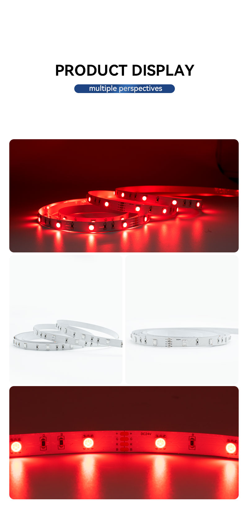 This 24V RGB Flexible LED Strip is ideal for a wide range of professional applications, including architectural lighting, commercial displays, retail signage, mood lighting, and event decoration, offering customizable lighting solutions for both indoor and outdoor environments.